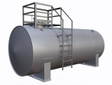 Також в окремих випадках резервуари закопують у ґрунт частково, або розміщують його над рівнем поверхні території, але насипають над ним штучний пагорб.За необхідності захисту від замерзання продукту в резервуарі встановлюється нагрівальне обладнання: пароводяний або електричний підігрів кабелем. Збереженню температурного режиму сприяє термоізолююча оболонка (теплоізоляція).Стандарти та типові проєкти РГС-40м3 В основі стандарту «Резервуари сталеві горизонтальні для нафтопродуктів» лежать типорозміри резервуарів РГС, які були розроблені ще у 50-х рр. ХХ століття. Але багато заводів-виробників при виготовленні резервуарів встановлюють власні ТУ. РГС-40 — це стандартний типорозмір, для якого існують і широко застосовуються типові проекти за конструкцією. Найпоширеніший внутрішній діаметр РГС-40 становить 2800 мм. На практиці при виготовленні резервуара враховуються побажання Замовника щодо конкретних габаритів, оскільки умови та планування місця на будівельному майданчику можуть відрізнятися. Наприклад, за нестачі площі можна виготовити більш компактний за довжиною резервуар, об’єм якого буде компенсований діаметром корпусу. Після заповнення опитувального листа на резервуар РГС-40 м3 вам буде надано на погодження ескіз, що відображає основні габаритні та компонентні характеристики і параметри необхідної ємності.Елементи конструкції РГС 40м3 Основними елементами горизонтальних сталевих циліндричних резервуарів є:- циліндрична частина (стінка) корпусу та вузли жорсткості;